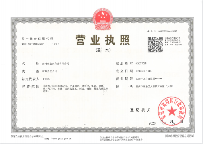 公司專業(yè)從事紡織業(yè)生產(chǎn)已三十多年,已成為一家從紡絲、織造、后整理到后加工一條龍的企業(yè)。公司位于江蘇省泰州市高港區(qū)大泗工業(yè)園區(qū),交通方便,占地100余畝,擁有現(xiàn)代化標(biāo)準(zhǔn)廠房,現(xiàn)有員工120人,年產(chǎn)過(guò)濾布300萬(wàn)米、除塵布袋600萬(wàn)米、縫包線、長(zhǎng)絲線4...